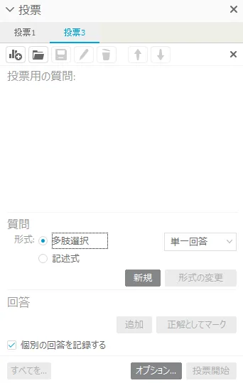 Poll panel allows participants to answer quizzes and questionnaires. Only presenters can start polling.