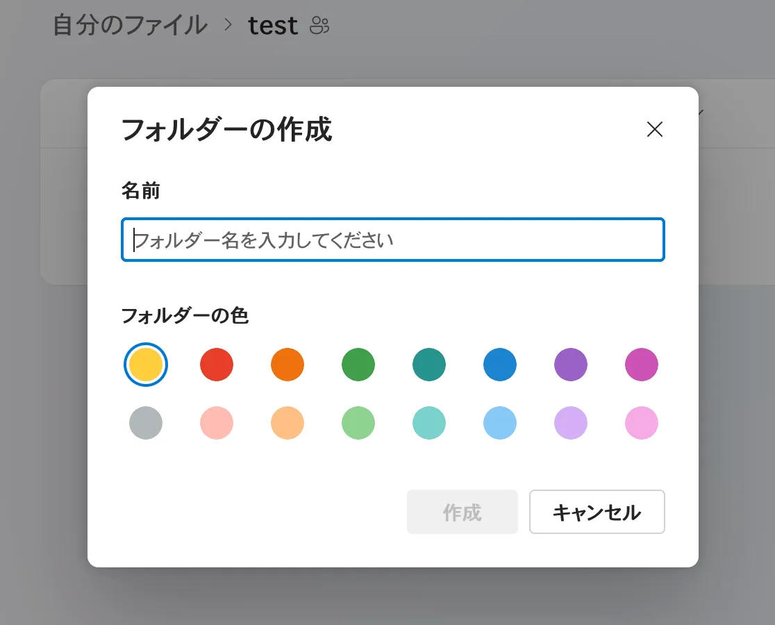 4. 画面下部の「作成」を押してください.フォルダーが作成されます.