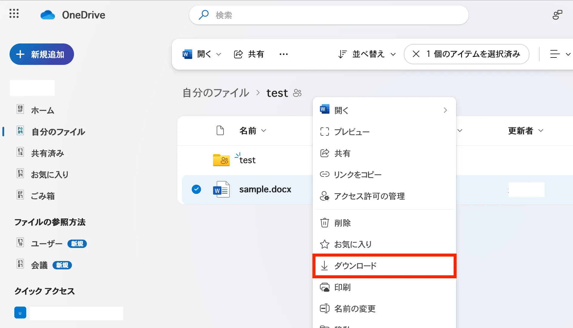 ここでは,OneDrive上のファイルをダウンロードする方法を説明します.