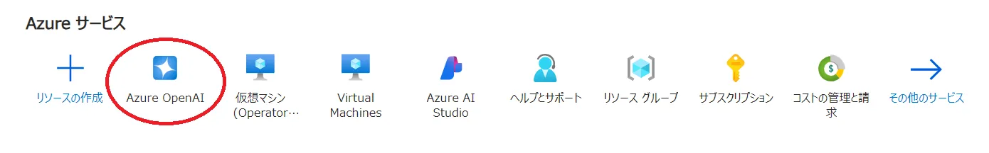 • Azureサービスの一覧の中からAzure OpenAIを選択します.