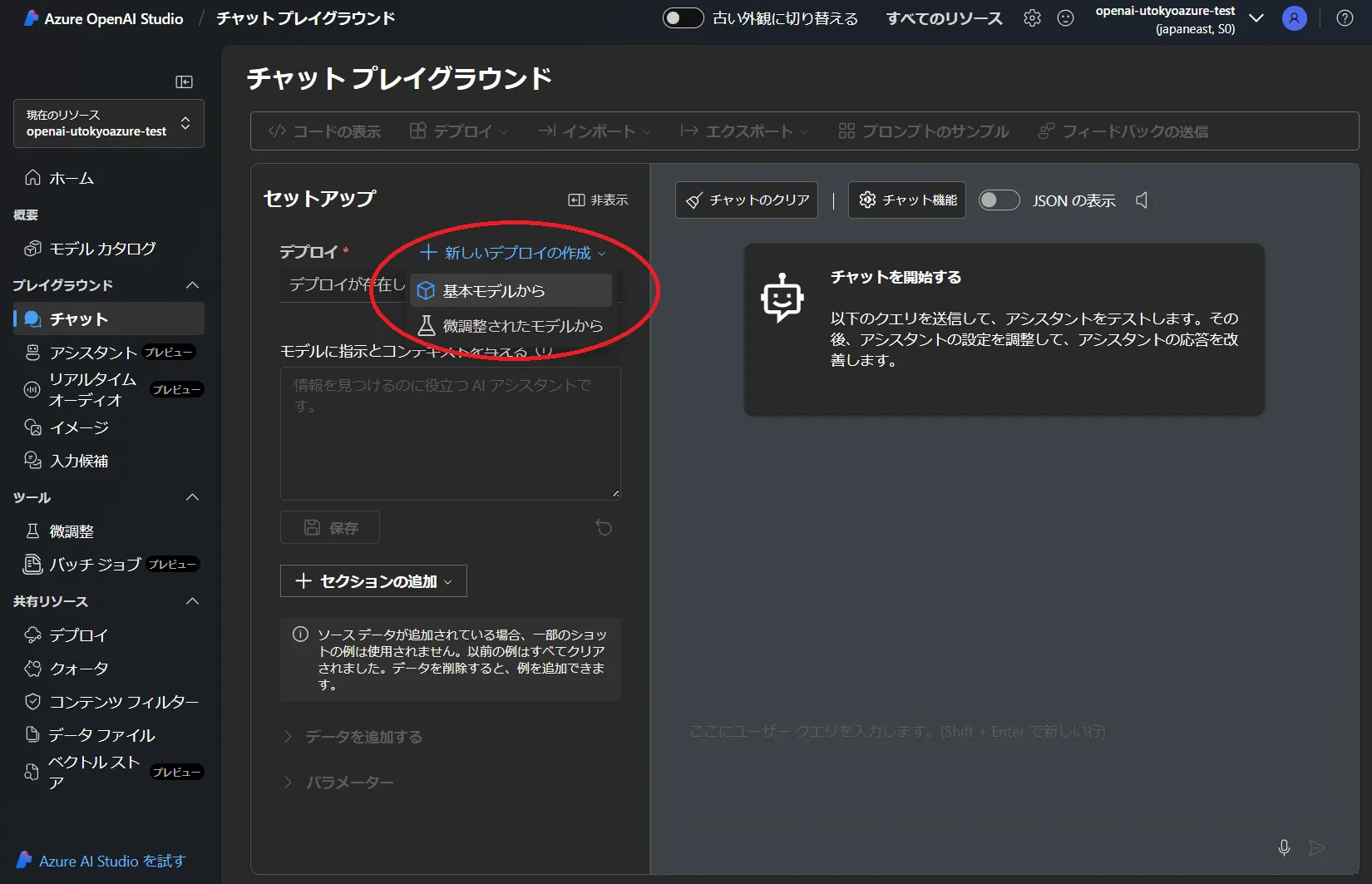Azure OpenAI を新規に利用する場合は、Microsoft Foundry ポータルからデプロイしてください.現在はこちらの手順を実施しても,最終的に Microsoft Foundry ポータルにデプロイする手順になります.