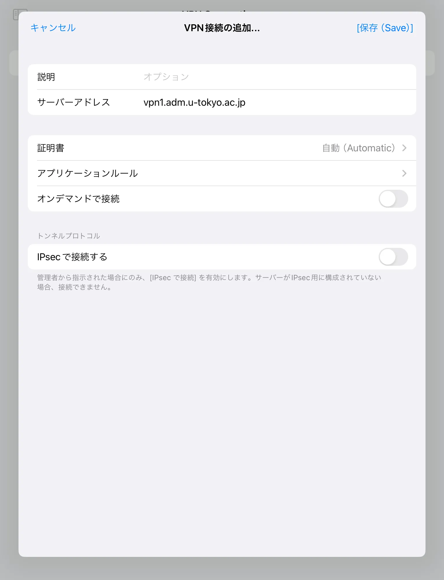 このページでは,UTokyo VPNをiPadで利用する方法を説明します.
