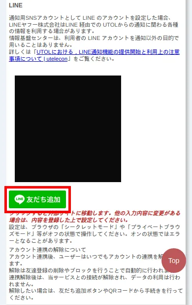 2. 「LINE」の欄のQRコードをLINEアプリで読み込むか,「友だち追加」を押してください.