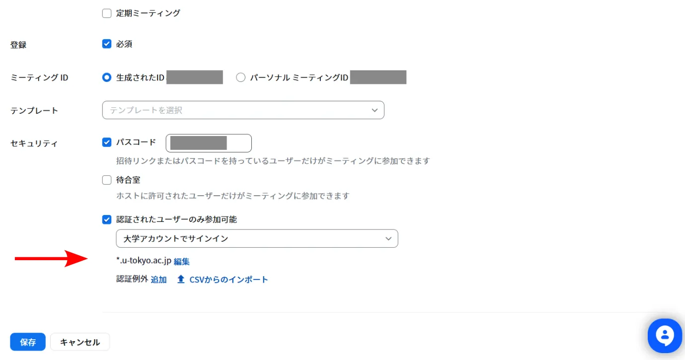 ここでは,事前登録を学内向けに制限できる「参加時に認証を求める」オプションについて説明します.